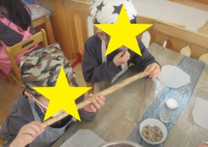 粉がしっかりと混ざったのを先生や栄養士の先生に見てもらったら、これから成形です♪