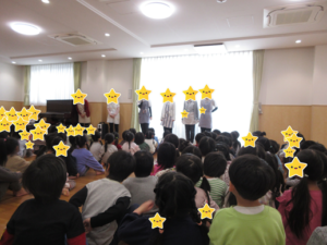 幼児クラスは誕生児へのインタビューをした後、みんなで歌を歌ってお祝いしました。