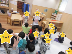 出し物では、ペープサート「まんまるちゃん」を見ました。