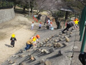 その後明石公園へ出発しこども広場でたっぷりと遊びました。