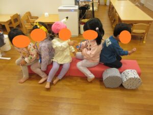 言葉も増え、友だちとの関わりも深まり、「一緒にしよー!」と誘い合う姿も見られます。わくわくえがお組のお友だちは、想像力が豊かなので、ごっこ遊びの会話を聞いていると、大人の話をよく聞いているなぁ…と改めて感じました。