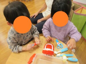 わくわくえがお組さんは友だちとごっこ遊びを楽しんでいます。