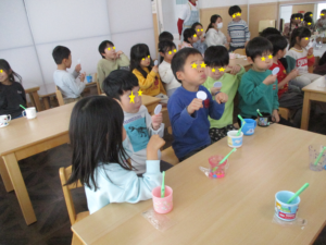 歯みがきのポイント、絵本での学び、歯みがきのうた、最後にお口クイズに挑戦しました。